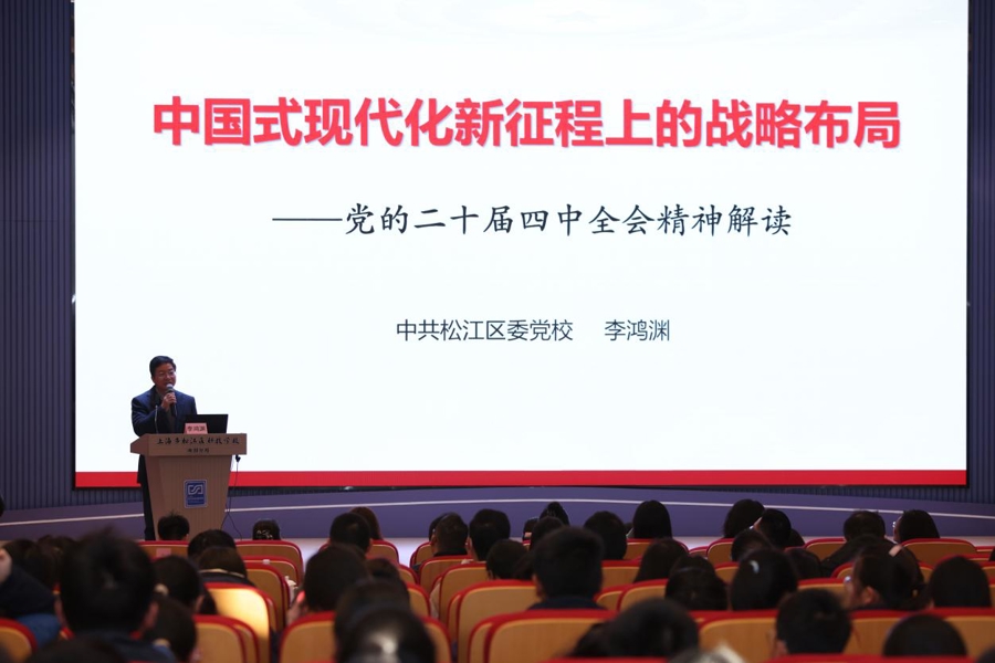 秋冬时节的松江,书香校园里涌动着念念想的暖流与文化的共识。12月19日,松江区科技学校南部分校迎来一场迥殊的“念念政盛宴”——以“集众智、聚众力各民族共同立志”为主题的党的二十届四中全会精神宣讲行动在此举行。行动由松江区委宣传部、统战部指导,区民宗办、栽植局无间阁下,中枢亮点聚焦“大中小学念念政课一体化”探索,通过跨学段教师同题共答、千里浸式宣讲体验,让铸牢中华英才共同体通晓的种子在青少年心中扎根,也为“十五五”本领各民族齐心共发展凝华育东谈主力量。