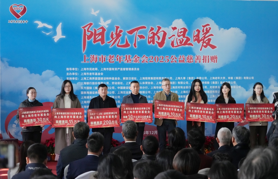 12月12日上昼,“阳光下的和蔼”上海市老年基金会公益慈善捐赠举止,在静安区宝华中心举行。
