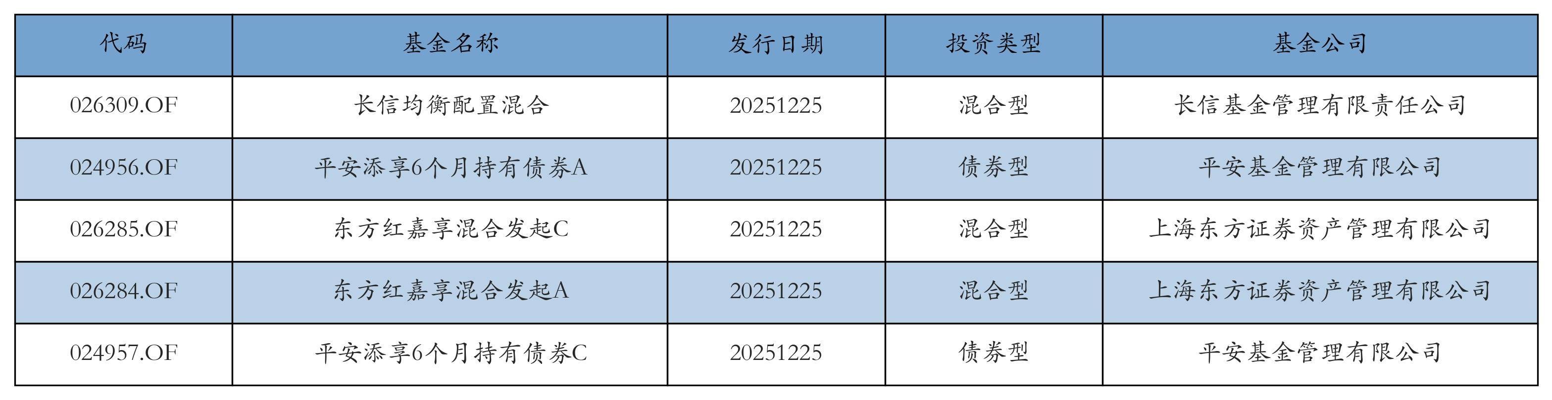 昨日有5只新基金刊行,分辩为:长信平衡确立羼杂、祯祥添享6个月抓有债券A、东方红嘉享羼杂发起C、东方红嘉享羼杂发起A、祯祥添享6个月抓有债券C,坚信见下表: