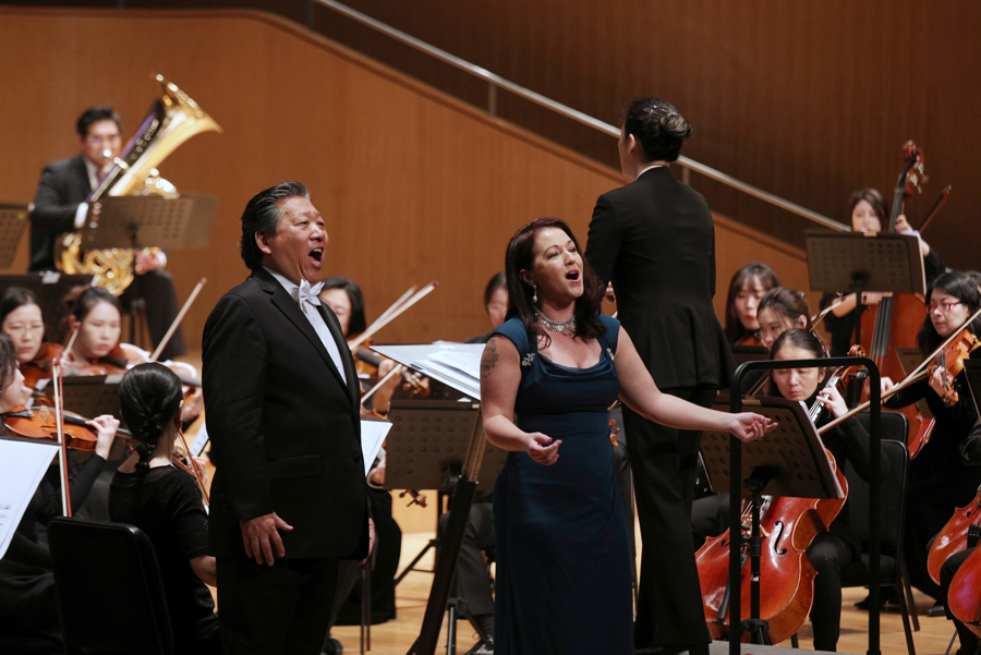 中国第一支非处事交响乐团——上海城市交响乐团本年20岁了。12月20日上昼,“东方市民音乐会·上海城市交响乐团建筑20周年音乐会”在东方艺术中心举行。提醒家卞祖善、张洁敏,歌颂家岳彩轮、费越、阿曼达·桑托斯,小提琴家夏小曹等登台,为乐团庆生。