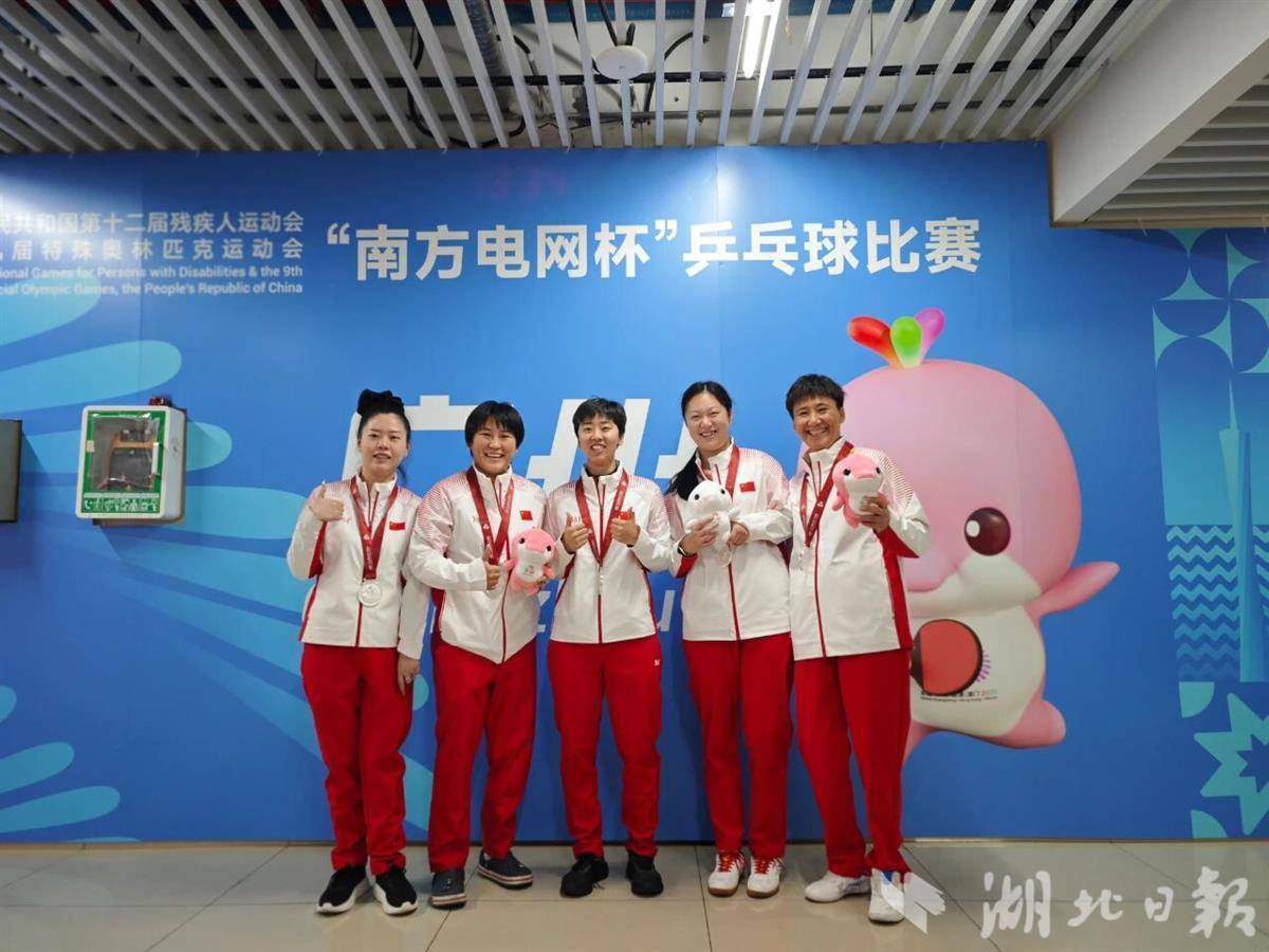湖北乒乓球队畅通员柳萌、曹钰晨、祝迎、黄雨琪赢得女子8-9级团体赛银牌。(省残联供图)